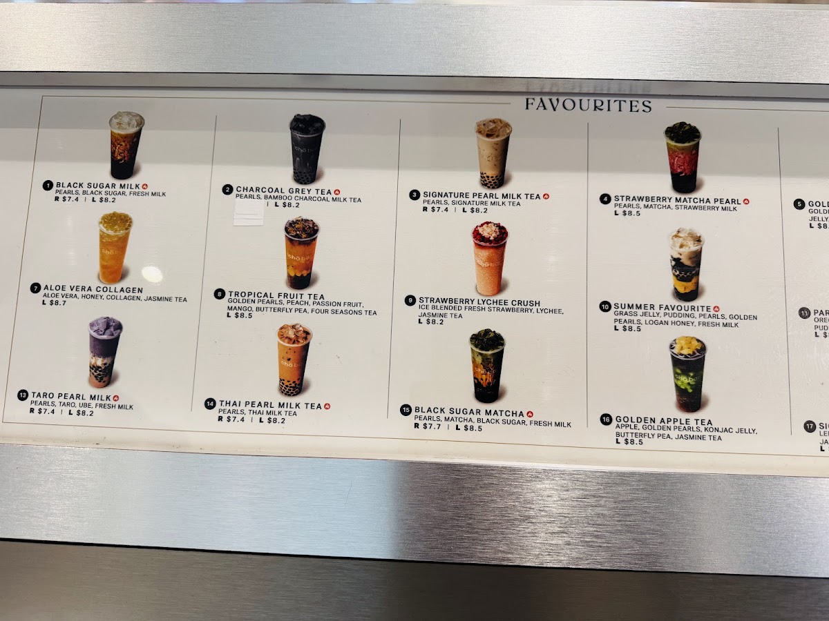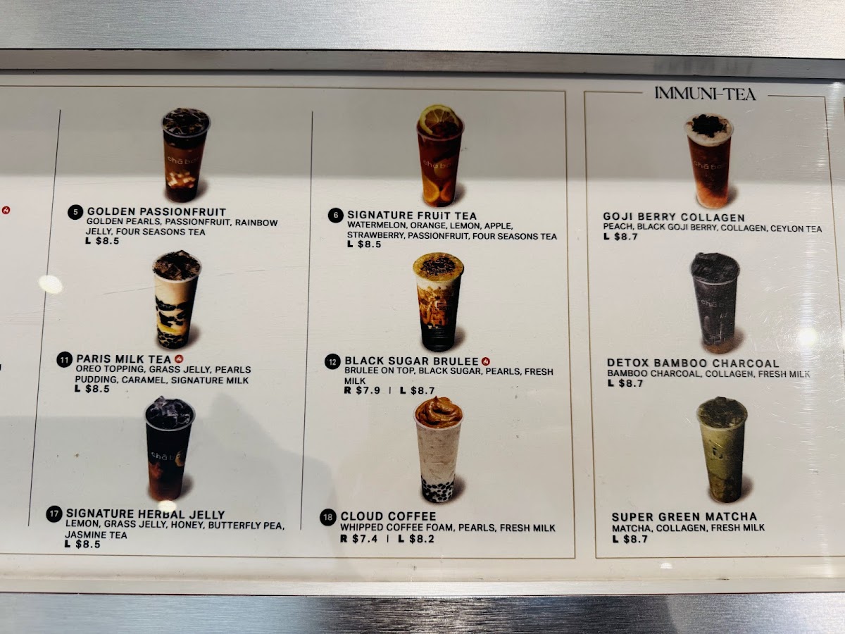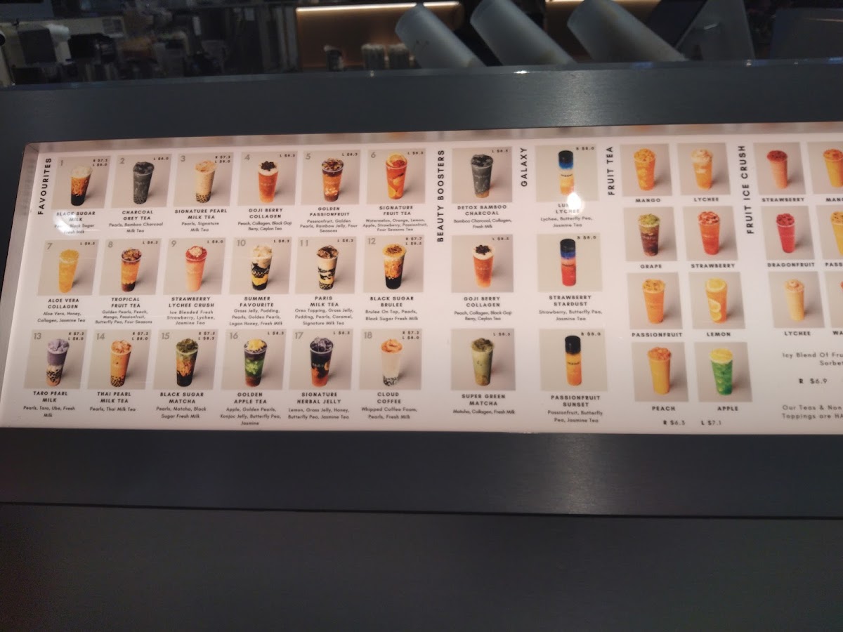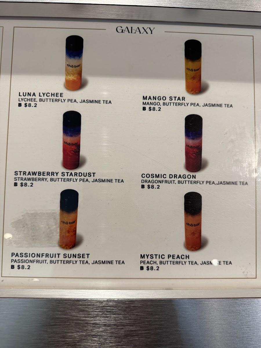 From a reviewer’s perspective, the menu at Chā Bar Liverpool offers a wide and appealing selection of drinks that caters to both classic tea lovers and those looking for more creative flavours. The Fruit Tea range includes refreshing options like Lychee Tea, Strawberry Tea, Mango Tea, Passionfruit Tea, and Lemon Tea, while the Frozen Fruit Crush selection features icy favourites such as Peach Fruit Crush, Strawberry Fruit Crush, Mango Fruit Crush, Lychee Fruit Crush, and Dragonfruit Crush. The Favourites section highlights popular choices like Summer Favourite, Paris Milk Tea, Thai Pearl Milk Tea, Black Sugar Brulee, and Black Sugar Fresh Milk, which are great for those who enjoy richer flavours. There are also smooth options in the Flavoured Milk category including Caramel Milk, Strawberry Milk, Vanilla Milk, Honeydew Milk, and Coffee Frappe. For something visually fun, the Galaxy Tea series offers Strawberry Stardust, Passionfruit Sunset, and Luna Lychee. Traditional tea drinkers can choose from Jasmine Tea, Oolong Tea, Ceylon Tea, Earl Grey Tea, and Four Seasons Tea in the Fresh Brewed Tea section, while Milk Tea options like Earl Grey Milk Tea and Oolong Milk Tea provide classic comfort. Finally, the Beauty Booster range, including HYDRATE Aloe Vera And Collagen, RESTORE Black Goji And Collagen, DETOX Charcoal Milk And Collagen, and SUPER GREEN Matcha Milk And Collagen, adds a health-focused twist, making the menu diverse, modern, and suitable for many tastes.
